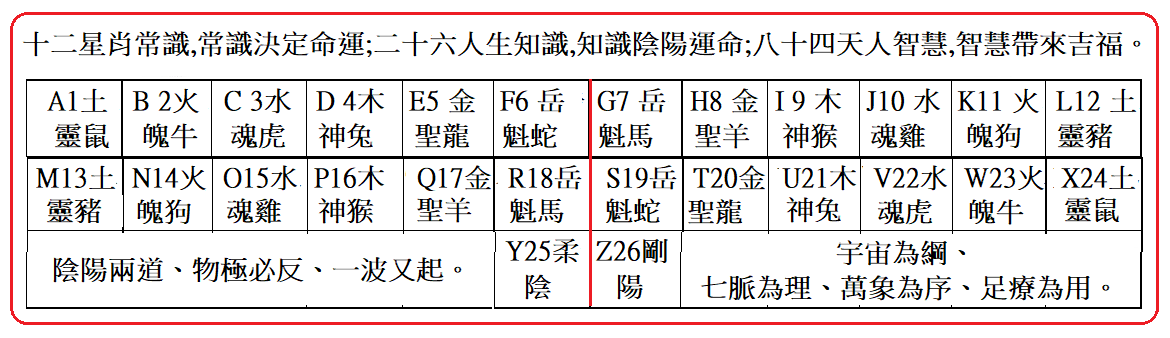 2026/1月:28序獸四道七階:。元亨利貞吉福祐。地黃元、天藍象、人紅心。心想事成。